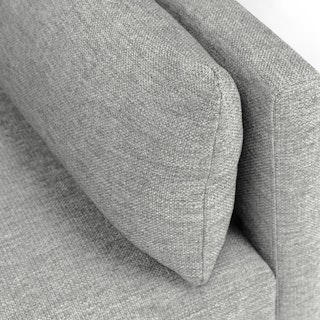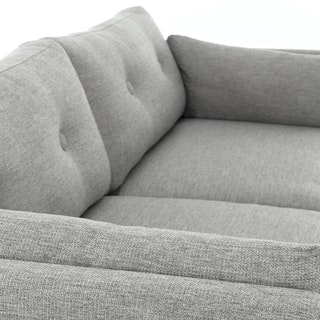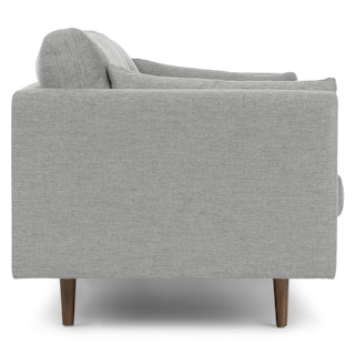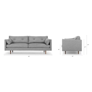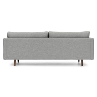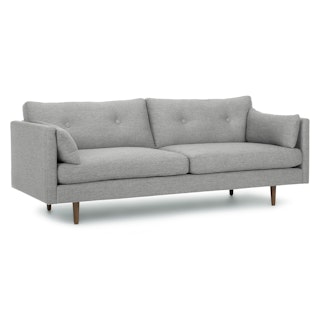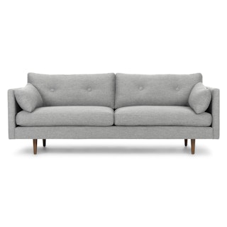 Poly-filled cushions are kept in check by the clean lines of this mid-century modern sofa. No-fuss upholstery and a neatly tufted button back make for an easy fit into even the most minimalist of living rooms.