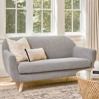 Small space, big impact. Bedecked with our fan-favorite bouclé fabric, this set is perfect for anything from an aparment to a reading nook. The Gabriola Loveseat has soft corners that make any space feel immediately more at ease. Put your feet up on the matching ottoman, put your artisinal cheese plate on the complementary Mara Side table. Easy feels good.