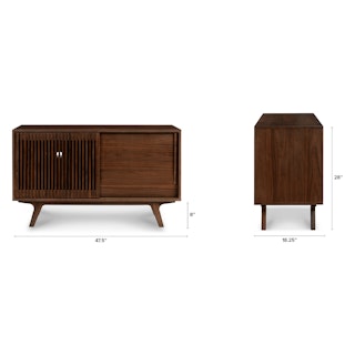 Say goodbye to all that annoying electronic clutter (yes, the wires too). With two sliding doors, customizable shelving, and multiple cord cut outs, our Jokuna Media Unit is the answer to your multiple-device-conundrum. No one will know about your fancy A/V setup until you press play.