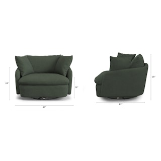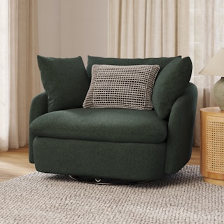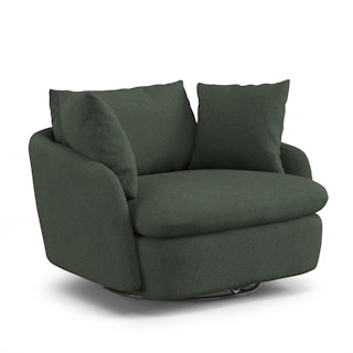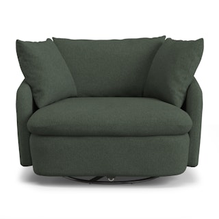 Cloud kingdom, population: you. The Leigh Grand swivel chair is the bigger brother, boasting an extra 14" in seat depth alone — nap central, we know. With thoughtful details that make it the perfect place to put your feet up and read/watch a show/stare into the middle distance. Upholstered with our ever-so-soft bouclé fabric, the Leigh is here to help you rest easy.