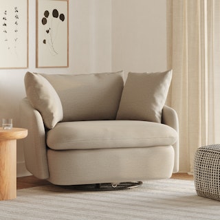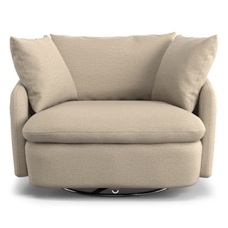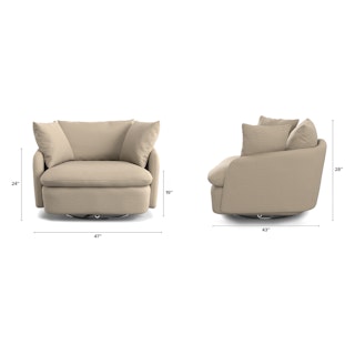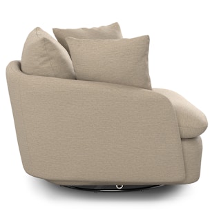 Cloud kingdom, population: you. The Leigh Grand swivel chair is the bigger brother, boasting an extra 14" in seat depth alone — nap central, we know. With thoughtful details that make it the perfect place to put your feet up and read/watch a show/stare into the middle distance. Upholstered with stain-resistant LifeGuard fabric, the Leigh is here to help you rest easy.