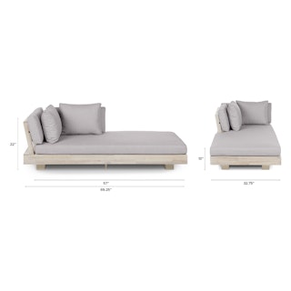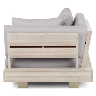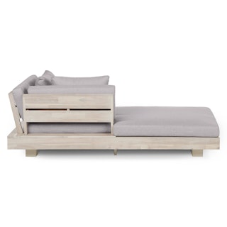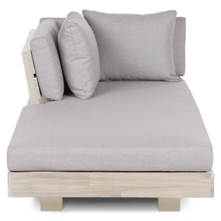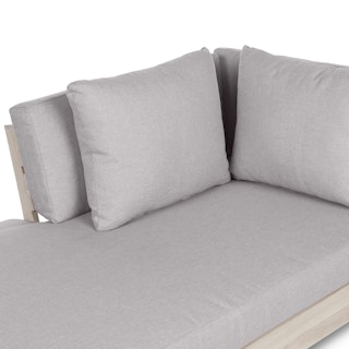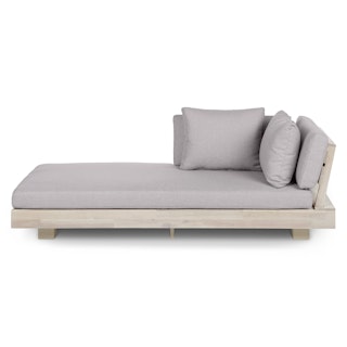 Stay a while. The Lubek chaise is built from a solid acacia wood base. The sofa is set close to the ground, encouraging you to really sink into (or even lie down on) those weather-resistant cushions. Crisp cushions and super clean lines add to the Lubek’s modern look, while the warmth of the acacia wood makes the sofa easy to pair with any backyard set up. We call this look “low key modernism."