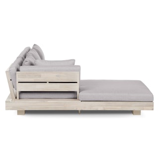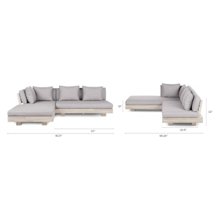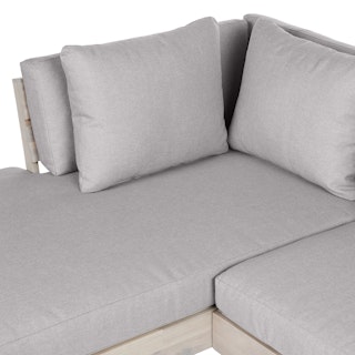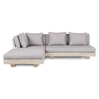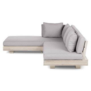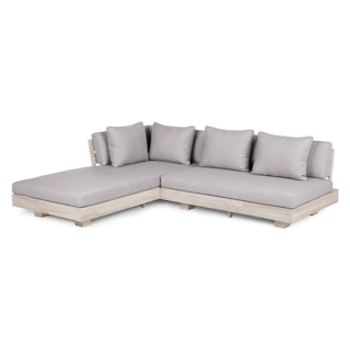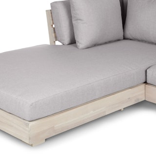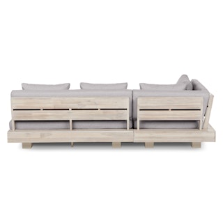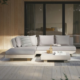 Stay a while. The Lubek sectional is built from a solid acacia wood base. The sofa is set close to the ground, encouraging you to really sink into (or even lie down on) those weather-resistant cushions. Crisp cushions and super clean lines add to the Lubek’s modern look, while the warmth of the acacia wood makes the sofa easy to pair with any backyard set up. We call this look “low key modernism."