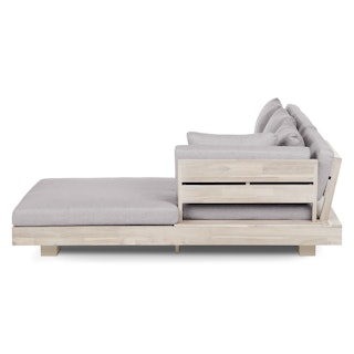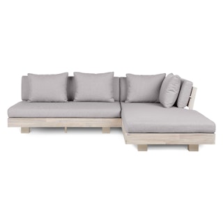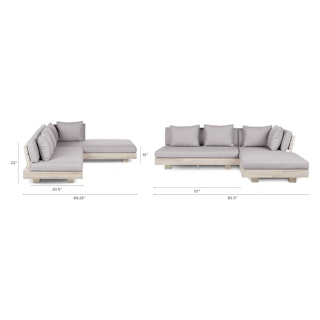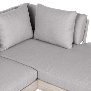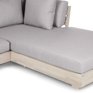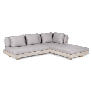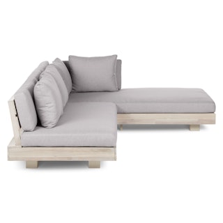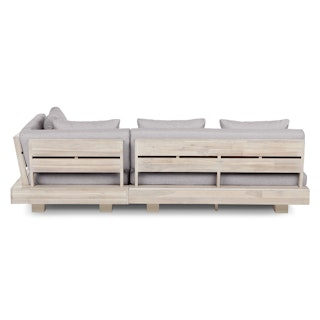 Stay a while. The Lubek sectional is built from a solid acacia wood base. The sofa is set close to the ground, encouraging you to really sink into (or even lie down on) those weather-resistant cushions. Crisp cushions and super clean lines add to the Lubek’s modern look, while the warmth of the acacia wood makes the sofa easy to pair with any backyard set up. We call this look “low key modernism."