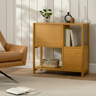 POV: you being organized. Designed with open shelves and closed cabinets, our multi-function Mysen Cabinet keeps your treasured publications on full display and your more personal items (like those cozy blankets you could never part with) stowed away in either of its roomy, soft-close cabinets. Show off what you want — the rest can be our little secret.