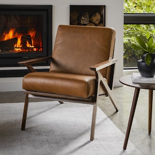 Upholstered in Toscana Tan, our corrected-grain leather that's smooth to the touch and given a protective finish