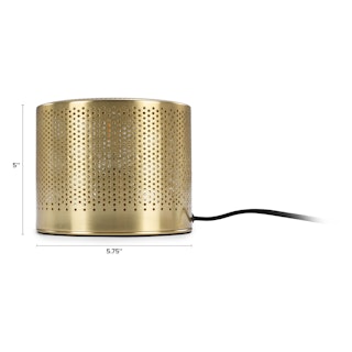 The Perforate lamp looks great sitting atop a side table, or hung as a sconce on the wall. The punched-metal shade casts twinkly, subtle lights across your room. Extra shine provided by the metal finish, and neatly tied together with a fabric-wrapped cord.