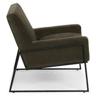 Get the green. The Regis in Juniper green brings earthy sophistication to your afternoon sit. Upholstered in plush cotton velvet, the Regis’ wide seat makes it great for leading an imposing meeting or for cuddling up with a book and a hot toddy. A powder coated aluminum frame assures you that the Regis has your back (and your butt) at all times.