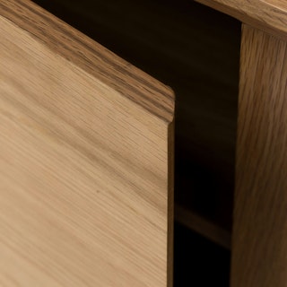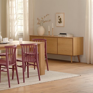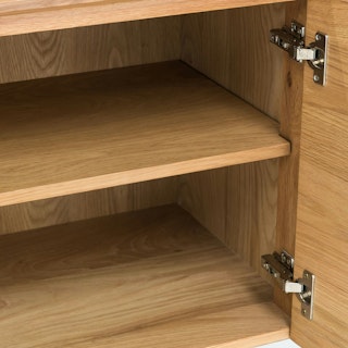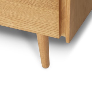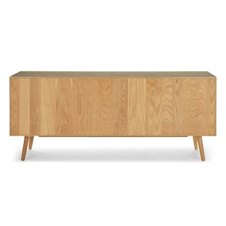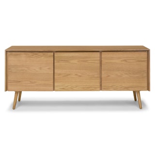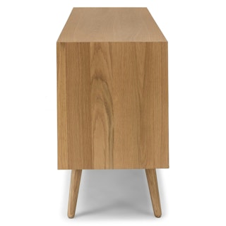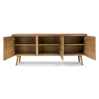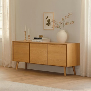 This mid-century modern sideboard is an elegant wood addition to any living space in need of a Danish modern touch. Store dinnerware in its three cabinets while displaying belongings (or a flatscreen) on its well-proportioned top. Each cabinet has one adjustable shelf.