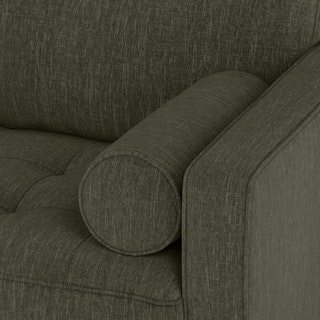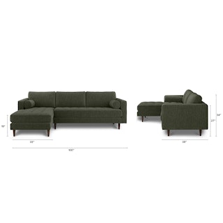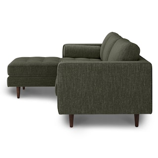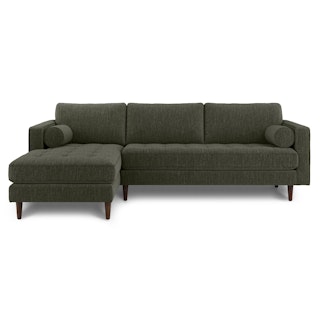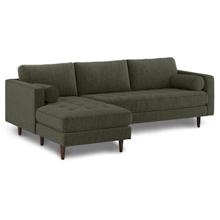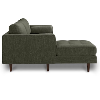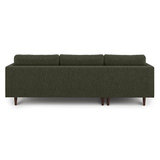 Oh, you like green space? This green sectional sofa is ready to snuggle. The Sven fir green sectional is made from a corner-blocked wooden frame and dapper medium-weave tweed fabric. Loose back cushions and bolsters make the Sven easy to clean, and great for arranging the perfect movie-watching position.