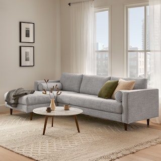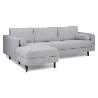 Chill some wine, fluff the cushions, and get ready for a perfect night in. The Sven Sectional Sofa is ready to host your friends… or just you. This sectional sofa is a classic: Built on kiln dried solid wood, this piece is upholstered in Neptune Blue fabric. Picture yourself laid up in a hotel-style waffle robe, watching rom-coms. Action movies? Your call.
