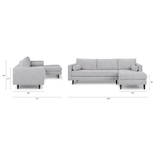 Chill some wine, fluff the cushions, and get ready for a perfect night in. The Sven Sectional Sofa is ready to host your friends… or just you. This sectional sofa is a classic: Built on kiln dried solid wood, this piece is upholstered in Neptune Blue fabric. Picture yourself laid up in a hotel-style waffle robe, watching rom-coms. Action movies? Your call.