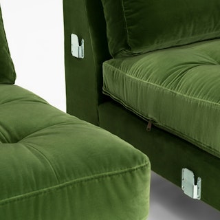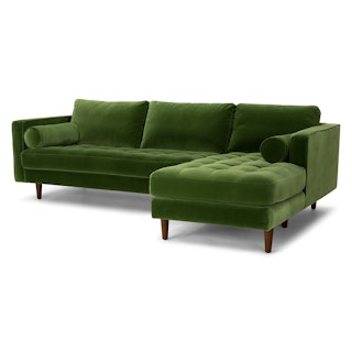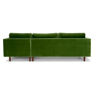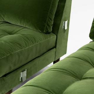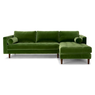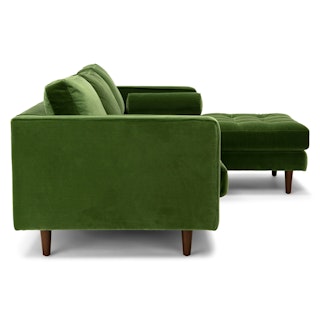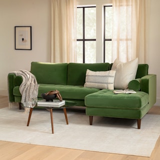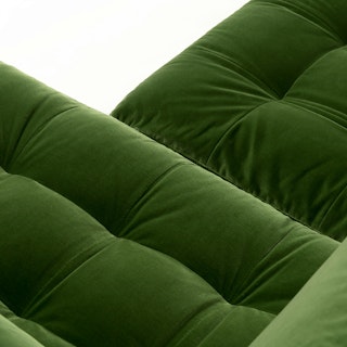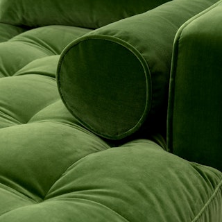 Trade in the concrete jungle. Upholstered in cotton velvet, the Sven sofa in grass green velvet shows off snuggly cushions and a tufted bench seat for maximum comfort. This green velvet sectional sofa will bring tropical vibes to your city life, no plane ticket required.