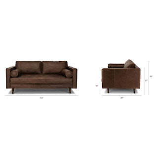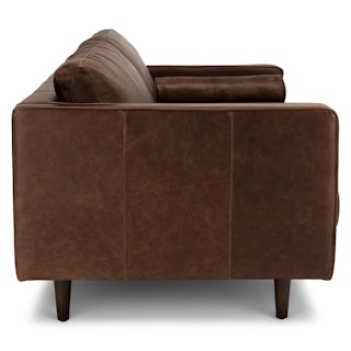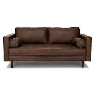 Our most popular sofa, reimagined for apartment living. The tufted bench seat supports super-long Netflix® marathons, and overstuffed cushions and round bolsters have your back no matter what position you chill in. Over time, the full-aniline leather will develop a beautiful vintage patina. Natural color variations, wrinkles and creases are part of the unique characteristics of this leather. It will develop a relaxed vintage look with regular use.