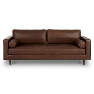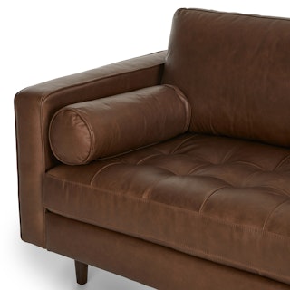 The Sven Sofa is your new BFF. The tufted bench seat supports super-long Netflix® marathons, and overstuffed cushions and round bolsters have your back no matter what position you chill in. Over time, the full-aniline leather will develop a beautiful vintage patina. Natural color variations, wrinkles and creases are part of the unique characteristics of this leather. It will develop a relaxed vintage look with regular use.