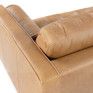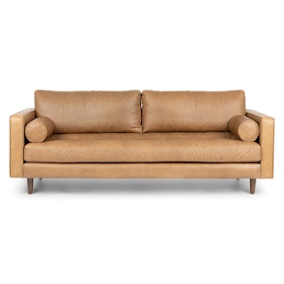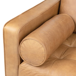 The Sven Sofa is your new BFF. The tufted bench seat supports super-long Netflix® marathons, and overstuffed cushions and round bolsters have your back no matter what position you chill in. Over time, the full-aniline leather will develop a beautiful vintage patina. Natural color variations, wrinkles and creases are part of the unique characteristics of this leather. It will develop a relaxed vintage look with regular use.