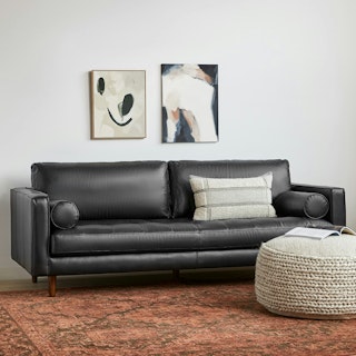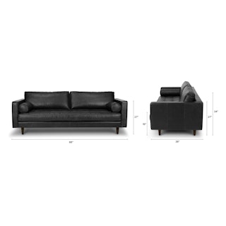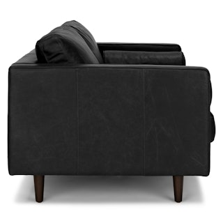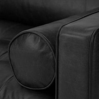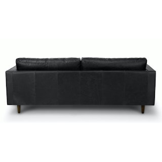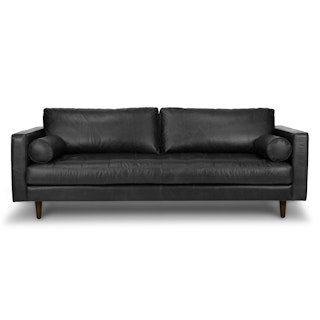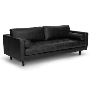 Casually sexy. The Sven in oxford black is equal parts laid back and intimidatingly hot. This black leather sofa is built on a corner-blocked wooden frame and upholstered with supple semi-aniline leather. Slender walnut legs, a tufted bench seat, and loose back and bolster cushions make for a sofa that is pulled together, but ready to get a little rowdy too. Add some sensual energy to your living space. Meow.