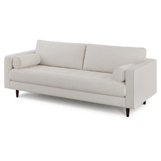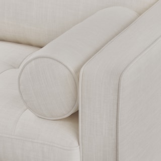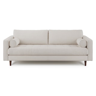 There’s a reason this is our most popular sofa. This modern take on a mid-century classic features crisp lines, a tufted benchseat, and two luxuriously stuffed back cushions. Two matching round bolsters complete the look.