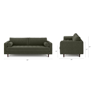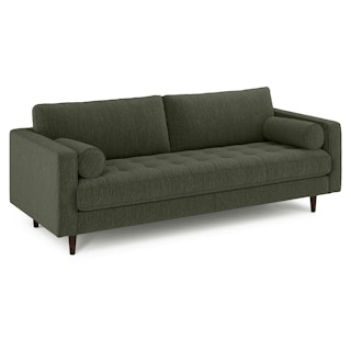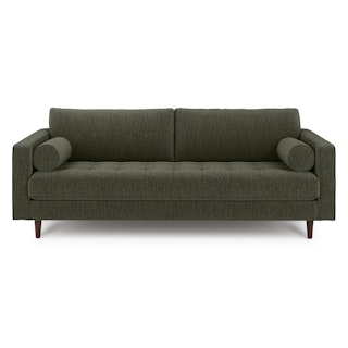 There’s a reason this is our most popular sofa. This modern take on a mid-century classic features crisp lines, a tufted benchseat, and two luxuriously stuffed back cushions. Two matching round bolsters complete the look.