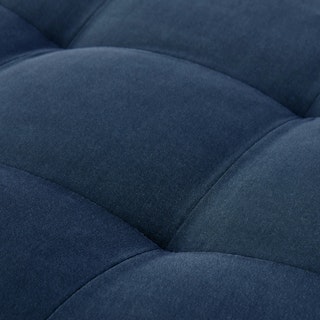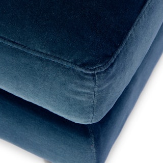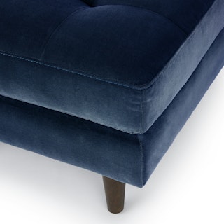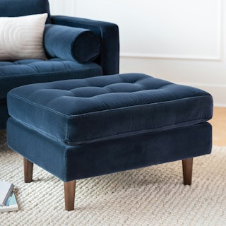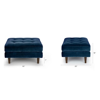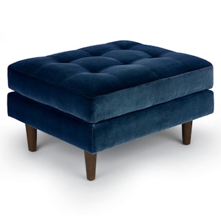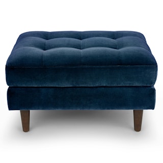 The Sven Ottoman in Cascadia Blue Velvet is your new BFF. The tufted topper supports short and long legs alike. Sturdy and adaptable, this blue velvet ottoman is a great supporting character in your living space.