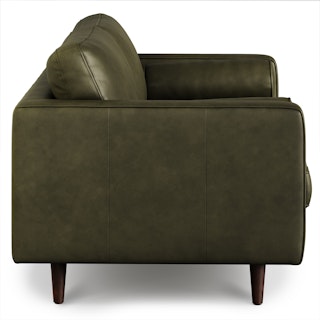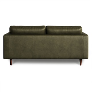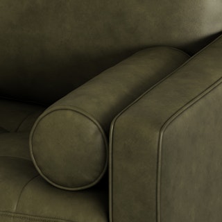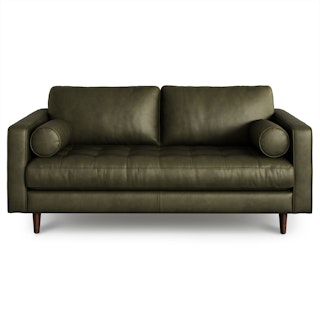 Snuggle up with your favorite pet on the loveseat version of our Sven Sofa. Built on a sturdy corner-blocked wooden frame, it's perfect for small spaces. With a comfy tufted bench seat, luxuriously plump back cushions, and matching round bolsters at either end, you get all the comfort of a full sized couch, but better space economy. Natural color variations, wrinkles and creases are part of the unique characteristics of full-aniline leather. It will develop a relaxed vintage look with regular use.