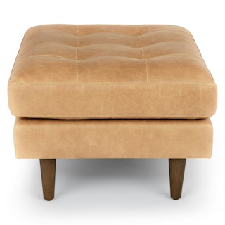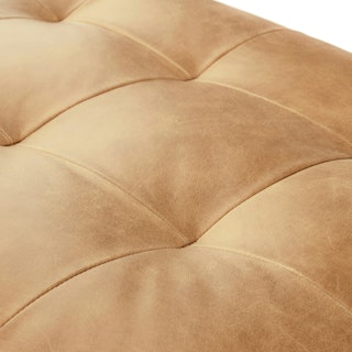 Meet the ottoman version of our iconic Sven Sofa. The tufted topper supports short and long legs alike. Over time, the full-aniline leather will develop a beautiful vintage patina. Natural color variations, wrinkles and creases are part of the unique characteristics of this leather. It will develop a relaxed vintage look with regular use.