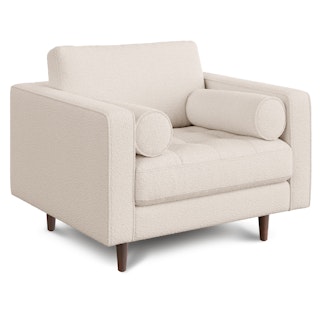 Meet the latest addition to our iconic Sven collection, the Sven Bouclé. With its tufted bench seat now upholstered in a low-absorption fabric, the Sven Bouclé Lounge Chair redefines the focal point within your living space. Along with its timeless solid tapered legs, and undeniably cute boucle charm, this new iteration offers a new perspective on a mid-century classic.