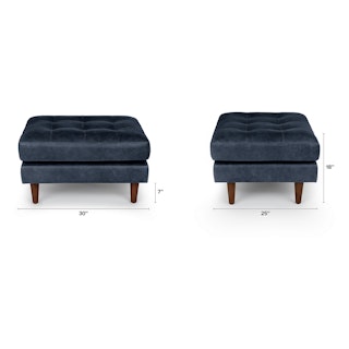 The Sven Ottoman in Oxford Blue is your new BFF. The tufted topper supports short and long legs alike. Over time, the semi-aniline leather will develop a beautiful vintage patina. Sturdy and adaptable, this tan leather ottoman is a great supporting character in your living space.