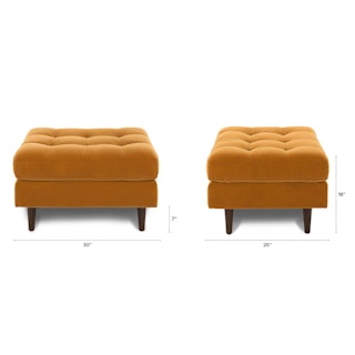 The Sven Ottoman is your new BFF. The velvet tufted topper is a golden pedestal for short, long, and four legs alike. Sturdy and adaptable, this ottoman is a great supporting character in your living space — while still possessing that undeniable star-quality.