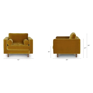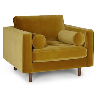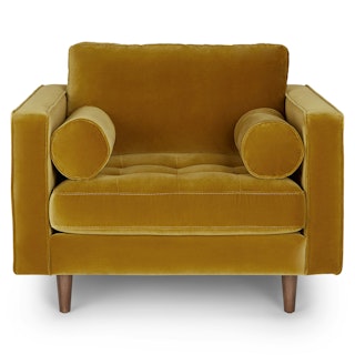 It’s called a throne, and you look great on it. The Sven chair is now available in gold. Feel like royalty in your own home while resting atop the cotton-velvet tufted seat. Lean back on the loose back cushion and round bolsters, resting assured that you can fluff and adjust to your hearts’ content. Whatever you do, feel great about your choice.