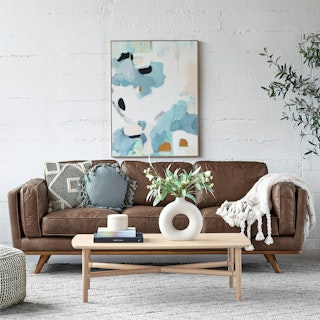 The Timber will inspire you to explore — even if your journey only goes as far as the pantry. With its oak wood trim, feathery cushions, and full-aniline dye process, the Timber is sinkable and plush but cleans up real nice. Natural color variations, wrinkles and creases are part of the unique characteristics of this leather. It will develop a relaxed vintage look with regular use.