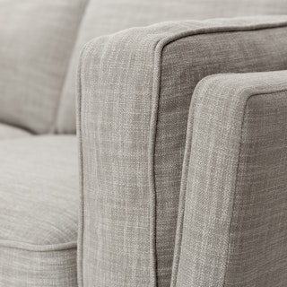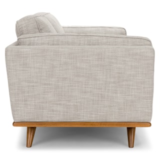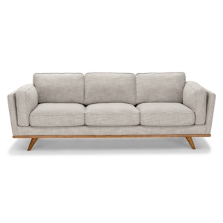 Like napping on a cloud. The Timber in rain cloud gray is soft, pillowy, and sturdy. Set atop a solid oak frame, this gray sofa has loose seat and back cushions for easy cleaning. Laid back and easy, the Timber is here to bring some effortless, super-comfy ease to your living space.