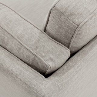 Linen and leather: an inspired combination. Upholstered in a smooth linen-blend fabric, the TImber is famous for being soft and inviting, with a deep seat and a deeper sink. Paired with the Timpani ottoman, this duo makes a statement: "Materials Matter." Multi-functional, the Timpani serves as a coffee table, an ottoman, or simply a symbol of your good taste.