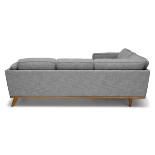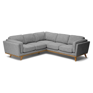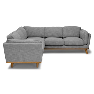 The ultimate chill zone, but for adults. The Timber pebble gray corner sectional hosts the lounging Olympics with feather-soft cushions and a sturdy corner-blocked wooden frame. The Timber’s soothing combination of gray fabric and oak stain trim makes this the perfect place to do… nothing at all. Meditate, listen to a podcast, or get cozy with a cuppa before heading into a new week.
