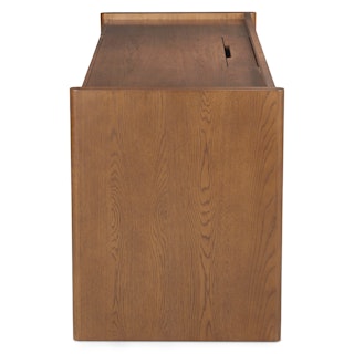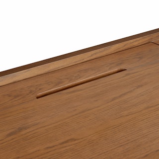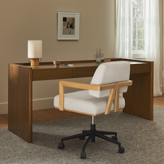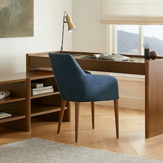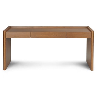 The Torme is characterized by simple lines and thoughtful details. The softly rounded shelves are subtle but impactful. Soft-close drawers with hidden pulls make the Torme desk a functional, beautiful addition to any space (but especially moody Norwegian studies).