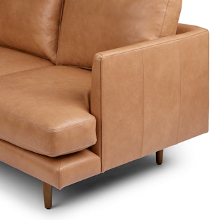 The Burrard sofa features sumptuous leather, strong lines, and sinkable cushions. Details such as double-stitched seams, hand-folded corners, and waxed Italian-tanned leather speak to quality construction, while slender wooden legs offer stability without adding bulk. Sit back with a strong drink and a good book, and reflect on your accomplishments — such as your good taste.