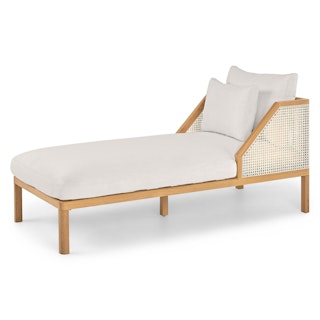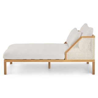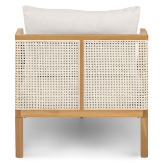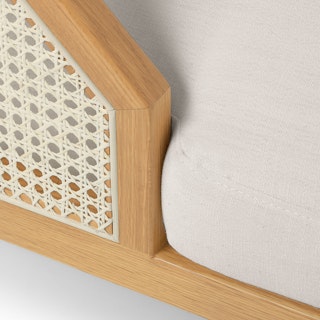 Short and sweet. Featuring a sleek solid wood frame, natural woven fisheye cane details, swoon-worthy cushioning, and an intentionally short frame, the Candra brings a modern sensibility to its old Hollywood charm. Equal parts classy and laid back, it's the ideal spot to curl up and relax.