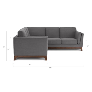 The Ceni sectional fuses the classic with the modern featuring its plush seating, sleek track arms and clean design lines. Its beautifully crafted wooden base with slanted legs enhances its strong and sturdy construction, while its plush seat cushions, backrests and armrests allow you to snuggle up comfortably.