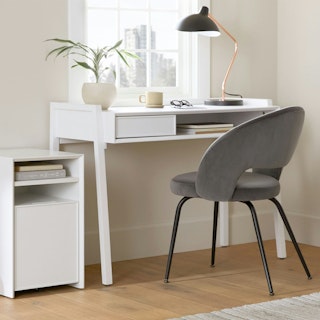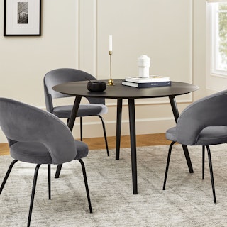 Bisou bisou! Don’t mind if we do. The Kapp dining chair exudes playful mid-century style with thoughtful updates. A keyhole back and tapered metal legs nod to the design sensibilities of the 50s. Upholstered in velvet, the Kapp brings a little extra glam to an atomic classic.